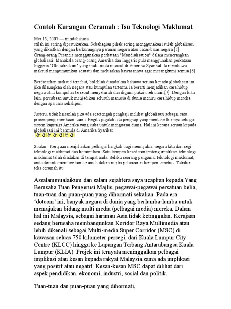 Rumah Terbuka Rakyat Malaysia Buku Teks ms 1. Contoh Karangan Kebaikan Kemajuan Teknologi maklumat. Form 5 Bahagian B Karangan Umum Past Year 2006 Pilih satu daripada soalan di bawah dan tulis sebuah karangan yang panjangnya lebih daripada 350 patah perkataan 1 Kemahiran Teknologi Maklumat dan Komunikasi ICT penting dalam kehidupan pada masa ini.